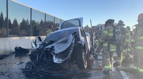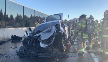 Tesla stanęła w ogniu. Na gaszenie poszło 23 tysiące litrów wody