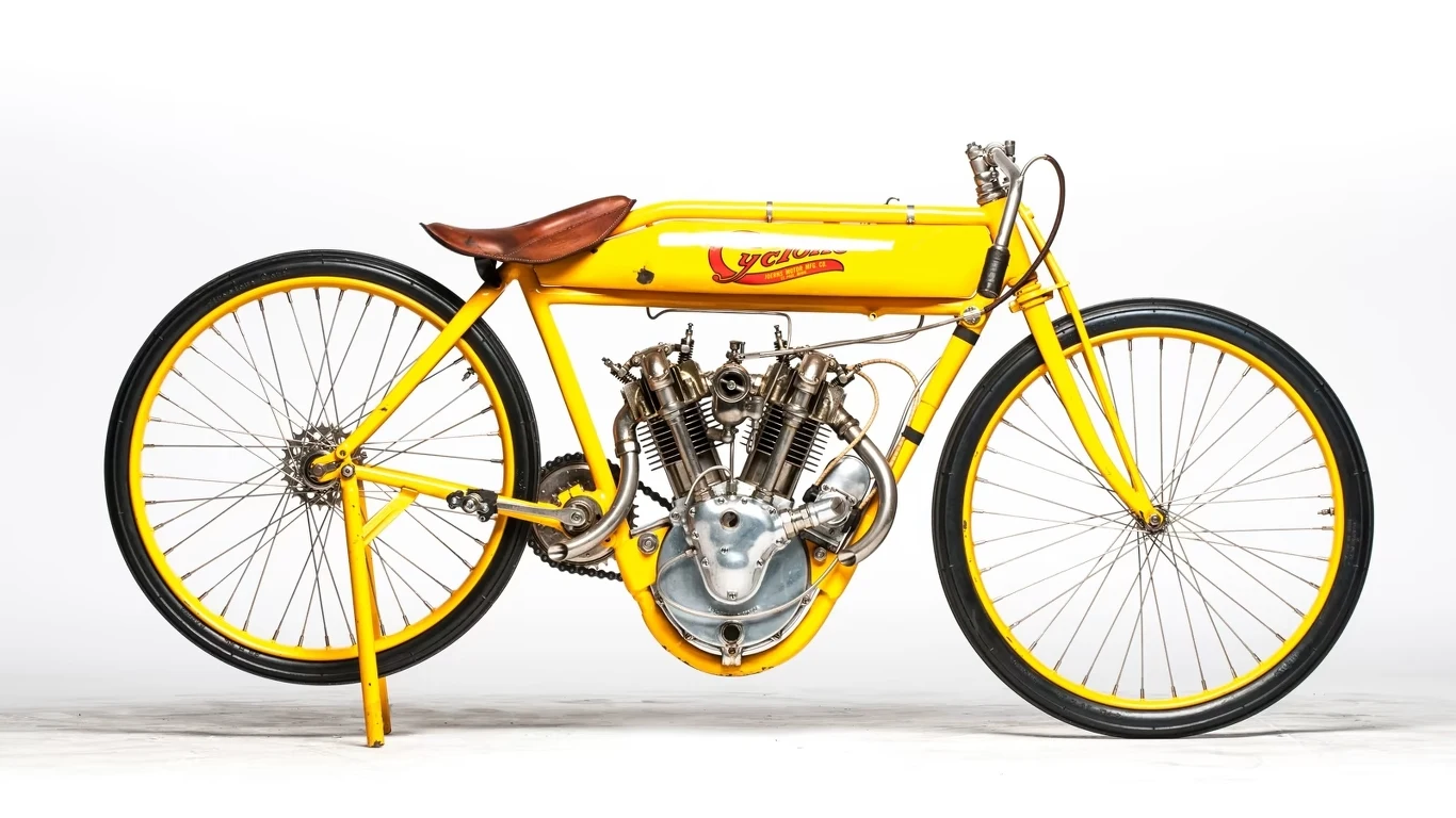 Ta drogowa bestia z zamierzchłych czasów wielokrotnie startowała w wyścigach na torach zbudowanych z drewnianych desek. Cyclone V-Twin skonstruowano na bazie drogowego modelu Cyclone Model 7 C-15. Motocykl pokryty jest żółtym, energetyzującym lakierem.