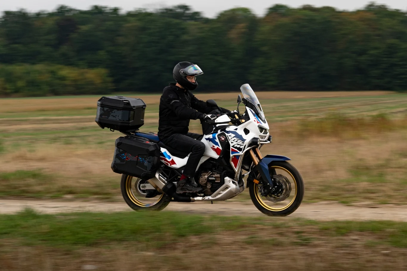 Africa Twin to motocykl uniwersalny i przewidywalny jak ulubione kapcie – zawsze wiesz, czego się spodziewać. Komfort jazdy, ochrona przed wiatrem i możliwość przewożenia bagażu czynią go idealnym wyborem na długie trasy.