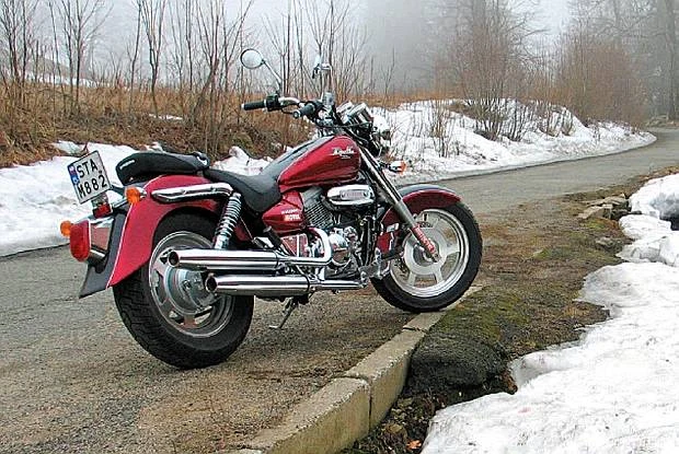 Wygląda jak cruiser, a jak brzmi? Z tym jest trochę gorzej. Normy UE dość skutecznie psują dźwięk czterosuwowego widlaka. Niemniej, osiągi ćwierćlitrówki pozytywnie zaskakują. Czterosuw bardzo lubi obroty - kiedy wskazówka obrotomierza minie 7000, robi się całkiem przyjemnie. Przy 10 000 obr/min w pocie czoła pracuje 28 koni - to niezły wynik. Przed przegrzaniem chłodzonej olejem i powietrzem jednostki napędowej chroni ogromna chłodnica oleju. To rozwiązanie ma tylko jedna wadę: trzeba odczekać dłuuugą chwilę, aż silnik osiągnie odpowiednią temperaturę. Gdy jest zimny, motocykl za nic nie chce współpracować, dławi się i niechętnie wkręca na obroty. Ciekawostką są dwa wałki rozrządu w głowicy łożyskowane na łożyskach kulkowych, a nie - jak u większości producentów - w łożyskach ślizgowych.