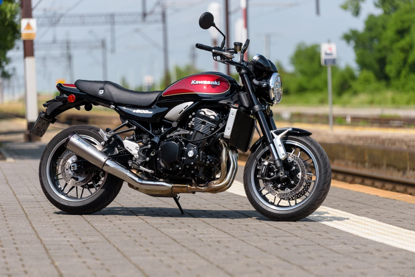Poza tym Z900 RS jest postawiony na bliźniaczych do Z900 zawieszeniach, ma 17-calowe koła o sportowych rozmiarach, a akcesoryjny tłumik Akrapovic wygląda dyskretnie, ale potrafi grać prawdziwą symfonię dźwięków. Za spowalnianie rączych 112 koni mechanicznych odpowiadają dwa bardzo skuteczne, czterotłoczkowe zaciski, współpracujące z 300-milimetrowymi tarczami z przodu i jednotłoczkowy zacisk z tyłu z tarczą o średnicy 250 mm. Jest też obowiązkowy ABS.