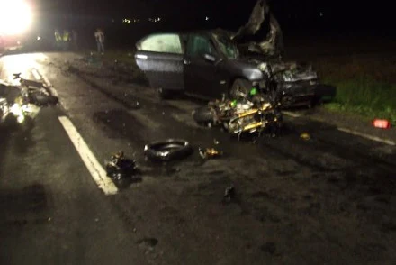 W niedzielę wieczorem na prostym odcinku drogi auto prowadzone przez 22-letniego kierowcę zderzyło się czołowo z dwoma motocyklami. Według wstępnych ustaleń policji, do wypadku doszło, gdy kierowca samochodu wyprzedzał inne auto i wjechał na lewy pas ruchu, którym jechały motocykle.
