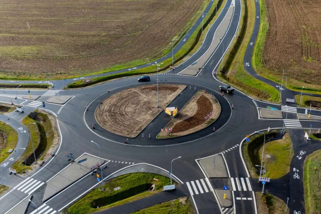 Przyglądając się fotografii opublikowanej na profilu GDDKiA można odnieść wrażenie, że to wzorcowe rondo. Gładki asfalt, drogi łączące dla pieszych i rowerzystów, a także świeże oznakowanie poziome tworzą obraz wręcz idealnej infrastruktury. Wprawne oko dostrzeże jednak poważny mankament - w miejscach przecięcia drogi dla pieszych i rowerów wyznaczono wyłącznie przejścia dla pieszych, nie ma natomiast przejazdów dla rowerów.