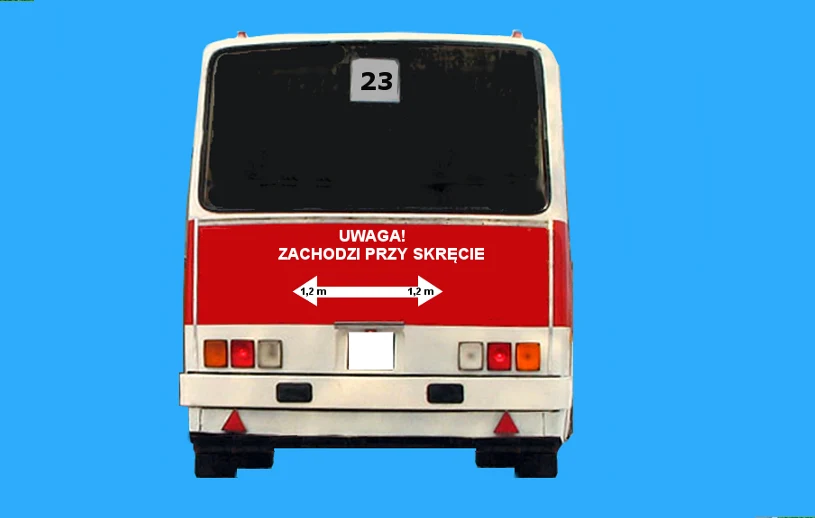 Kiedyś na tyłach autobusu znajdował się duży napis: "uwaga, zachodzi przy skręcie":