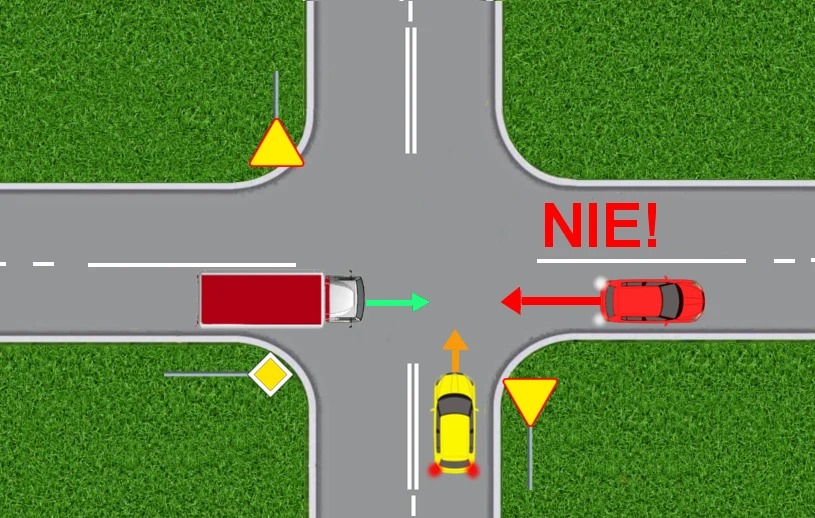 Na przykład cofanie pojazdu tuż za zakrętem może być zaskakujące dla kierowcy, który za chwilę nadjedzie: