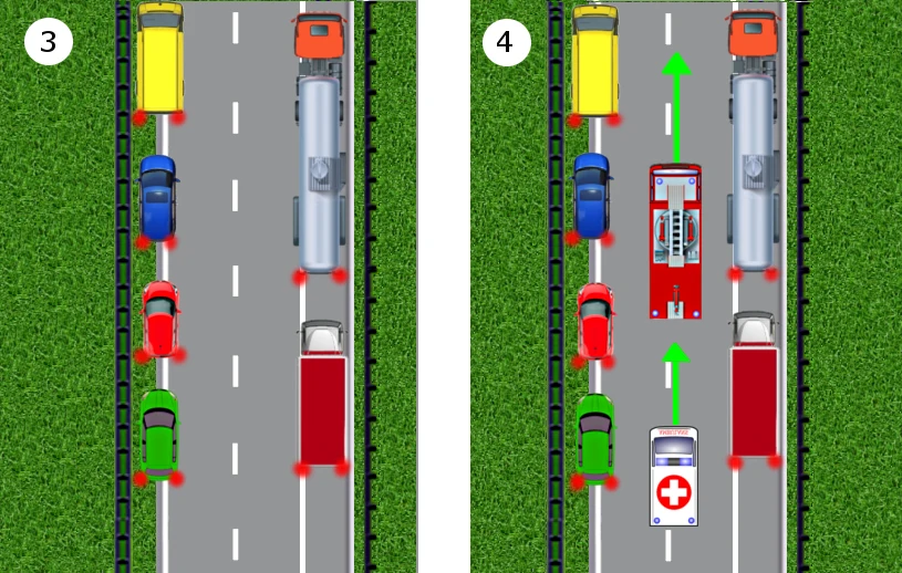 - Po przejechaniu pojazdu uprzywilejowanego nie powracaj na swój pas, utrzymaj korytarz ratunkowy, bo za chwilę mogą nadjechać kolejne pojazdy ratunkowe