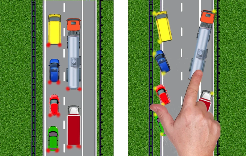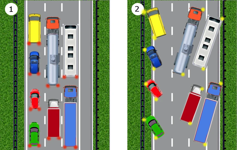 - Jeżeli znajdujesz się na lewym pasie zawsze usuwaj się na lewo, jeżeli na pozostałych pasach zawsze usuwaj się na prawo