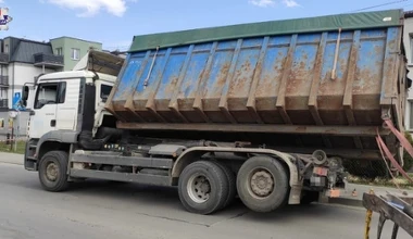 Ciężarówka przewoziła dźwig, a z opon wystawały jej druty