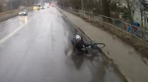 O włos od tragedii. Rowerzysta przewrócił się pod nadjeżdżający autobus