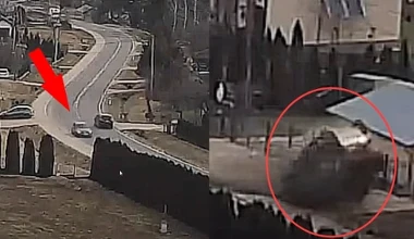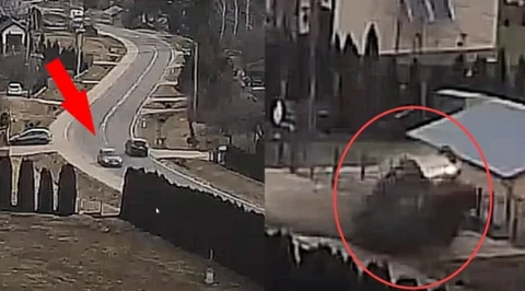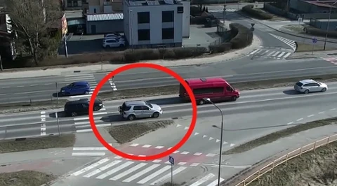 Kamera internetowa nagrała wypadek. Golf wyleciał kilka metrów w górę
