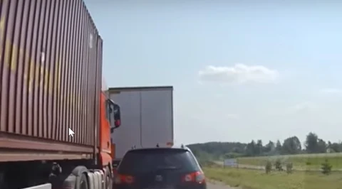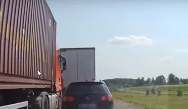 Kierowca osobówki zahamował przed tirem. Tirowcy wzięli go więc w kleszcze