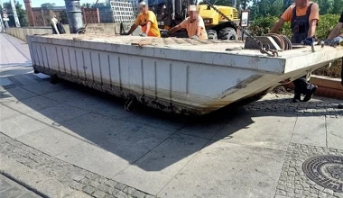 Wrocław. Wielki pływak wypadł z ciężarówki na drogę rowerową