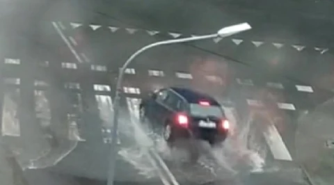Po burzy woda ze studzienki wyrzuciła samochód w powietrze