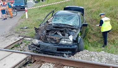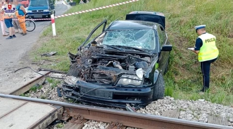 Nie wyhamował przed rogatkami i wjechał w pociąg.