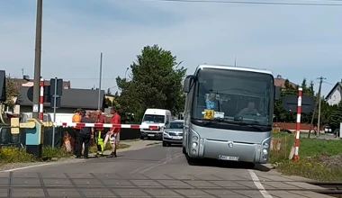 Kierowca autobusu wjechał na przejazd omijając zamknięte półzapory