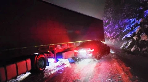 "Driftująca" naczepa uderzyła w BMW!