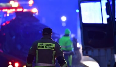Lublin. Wypadek autokaru. Pojazd wpadł do rowu