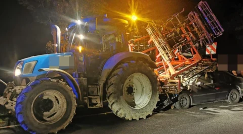 Uderzył w potężny ciągnik. Miał bardzo dużo szczęścia