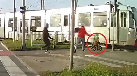 Dziecko prawie wjechało na rowerku pod tramwaj