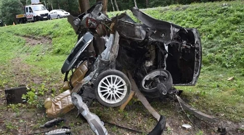 Potworny wypadek. Audi owinęło się na drzewie. Podłogą!