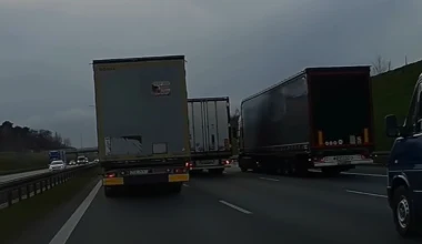 Wyprzedzające się tiry zablokowały autostradę. Wszystkie trzy pasy