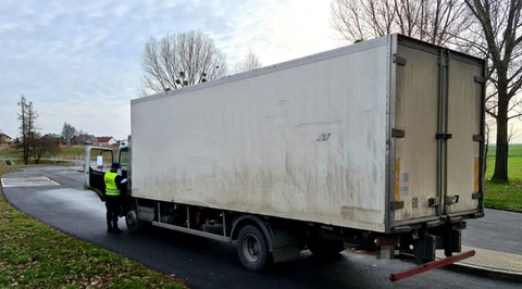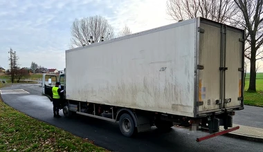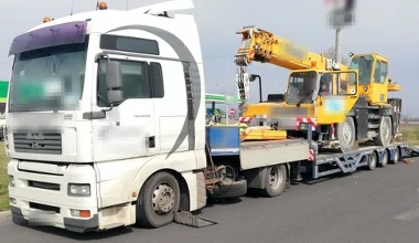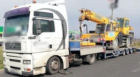 Ciężarówka przewoziła dźwig, a z opon wystawały jej druty