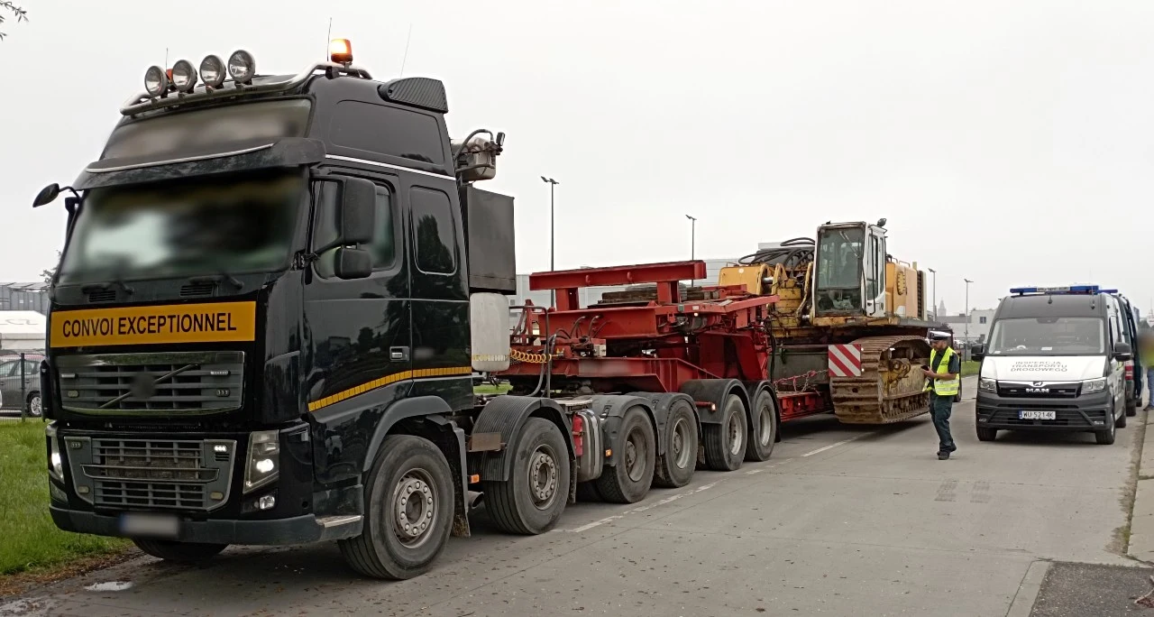 Funkcjonariusze Inspekcji Transportu Drogowego i policji zatrzymali do kontroli drogowej ciągnik siodłowy przewożący na naczepie potężną koparkę. Kierowca liczył, że nocą uda mu się pokonać trasę, nie wzbudzając zainteresowania służb.