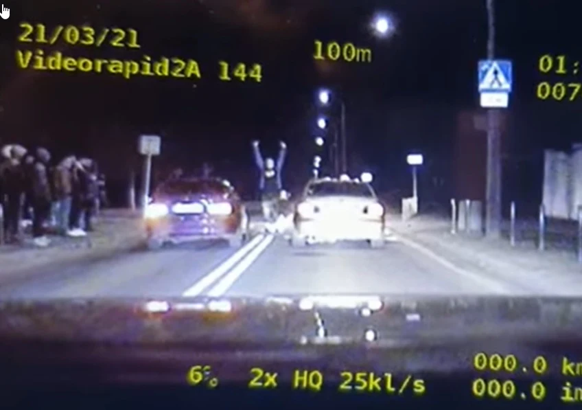 Policjanci drogówki z Poznania udostępnili nagranie ze swojej interwencji. Widać na nim, jak nieoznakowany radiowóz spokojnie czeka na prawym pasie ruchu aż "zawodnicy", którzy za linię startu obrali sobie... linię przed przejściem dla pieszych, ruszą do wyścigu.