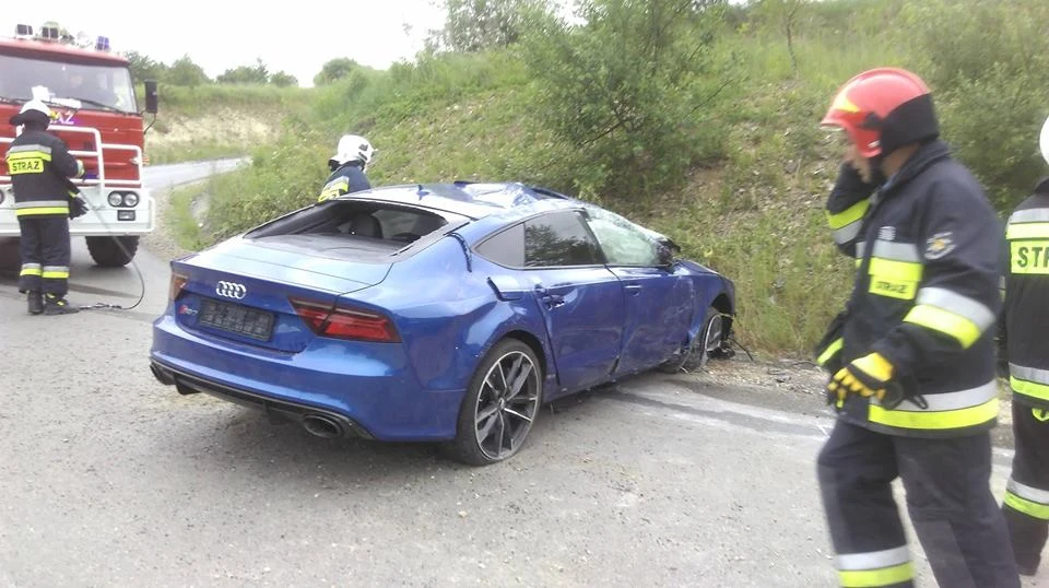 Do wypadku, który zapewne zakwalifikowany został jako kolizja (wg świadków kierowca wyszedł ze zdarzenia bez szwanku) doszło na bardzo krętym odcinku, gdzie obowiązuje ograniczenie prędkości do... 30 km/h. Samochód wypadł z drogi, odbił się od betonowego przepustu, przeleciał przez przód i zatrzymał się na dachu, przy okazji kosząc znaki drogowe.W naszej redakcji całkiem niedawno mieliśmy okazję testować takie auto. RS7 Performance napędzany jest silnikiem V8 o pojemności 4,0 l. Jednostka rozwija moc 605 KM i rozpędza samochód do 100 km/h w 3,7 s! Prędkość maksymalna to aż 305 km/h.