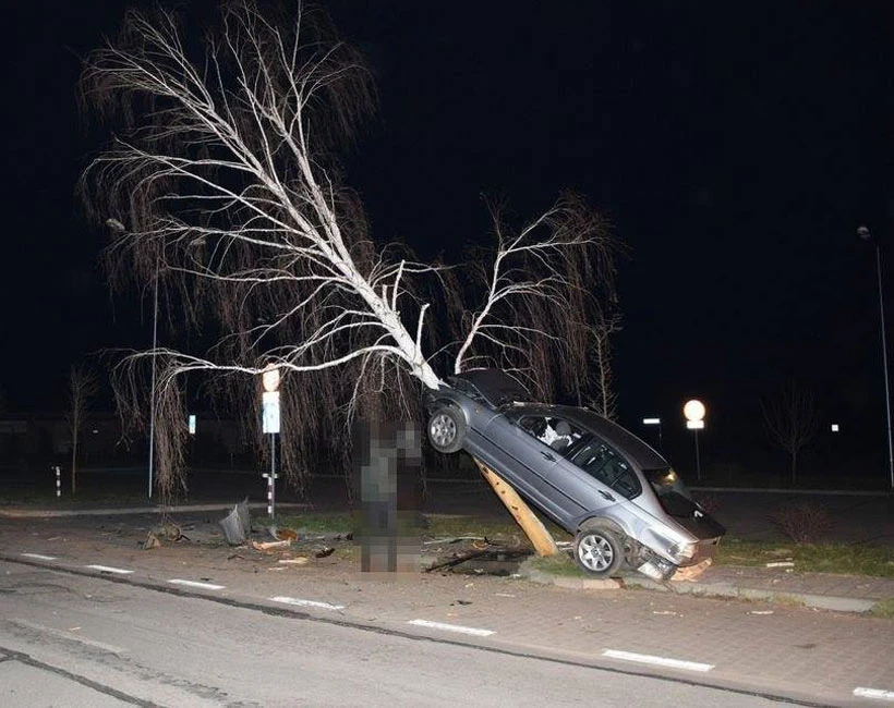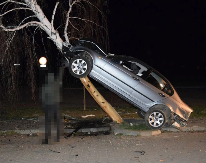Wiózł trzech pasażerów w wieku 17, 18 i 20-lat. Kierowca stracił panowanie nad pojazdem i uderzył w drzewo. Przód auta zawisł na drzewie. Wszyscy podróżujący BMW zostali zabrani do szpitala z uwagi na obrażenia jakich doznali.