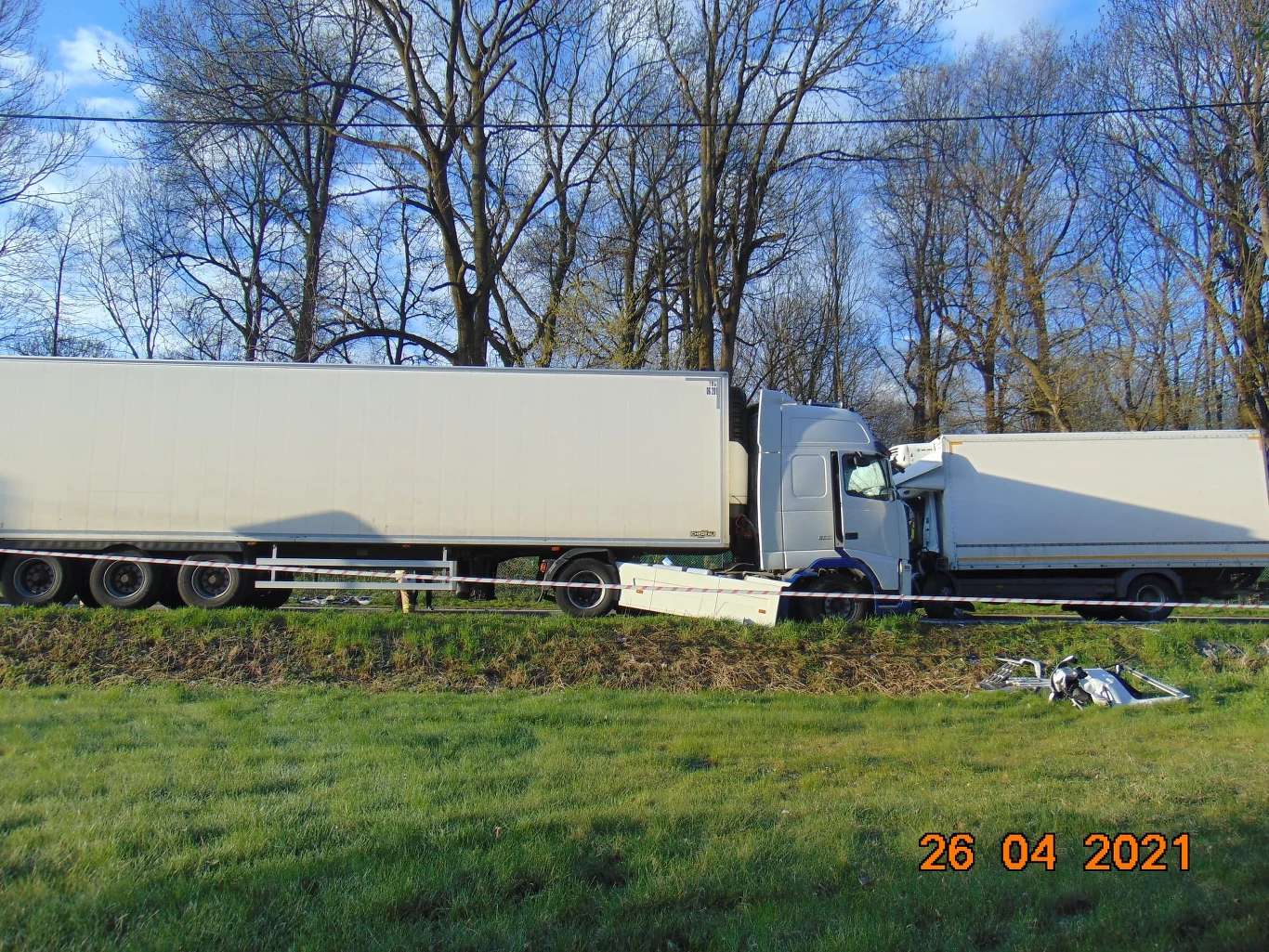 Około 4:25 w miejscowości Piotrkowice Małe (powiat proszowicki) doszło do zderzenia samochodów ciężarowych. Z wstępnych ustaleń policji wynika, że 54-letni kierujący ciężarowym Mercedesem prawdopodobnie zasnął (lub zasłabł) za kierownicą swojego pojazdu, przez co zjechał na przeciwległy pas ruchu, doprowadzając do czołowego zderzenia z ciągnikiem siodłowym marki Volvo z naczepą. Do wypadku doszło na prostym odcinku drogi w rejonie przejścia dla pieszych. W wyniku zderzenia kierujący Mercedesem z ciężkimi obrażeniami ciała został przetransportowany śmigłowcem Lotniczego Pogotowia Ratunkowego do szpitala, gdzie lekarze walczą o jego życia.26-letni kierujący Volvo nie doznał obrażeń ciała. Na miejscu przeprowadzono oględziny z udziałem biegłego z zakresu rekonstrukcji wypadków drogowych. Dochodzenie wyjaśni przyczyny i okoliczności tego zdarzenia.