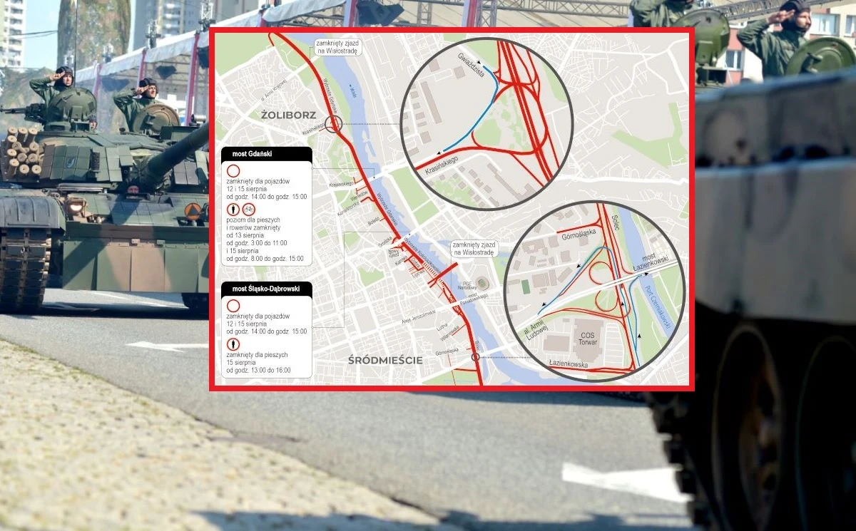 W związku ze Świętem Wojska Polskiego i planowaną tego dnia defiladą wojskową już dziś, 14 sierpnia o 20:00 zamknięta zostanie Wisłostrada. Ponowne otwarcie ma nastąpić 15 sierpnia o godzinie 18:00. Wisłostrada zostanie zamknięta od mostu Skłodowskiej-Curie do ulicy Gagarina. Chodzi o obie jezdnie ulic Wybrzeże Gdyńskie, Wybrzeże Gdańskie, Wybrzeże Kościuszkowskie, Wioślarska i Solec od mostu Skłodowskiej-Curie do mostu Łazienkowskiego.