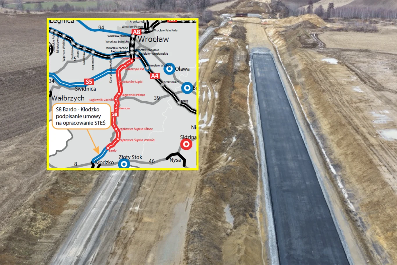 - GDDKiA podpisała umowę na przygotowanie dokumentacji dla ostatniego odcinka drogi ekspresowej S8 między Bardem a Kłodzkiem, obejmującą analizę trzech wariantów przebiegu trasy.