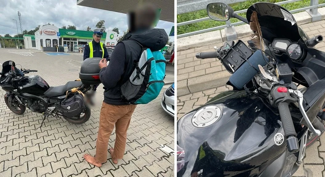 Do niecodziennej kontroli doszło w Łodzi na ulicy Pabianickiej. Patrol policji zauważył motocyklistę, który poruszał się bez obowiązkowego kasku oraz bez butów. Funkcjonariusze zatrzymli go więc do kontroli. Szybko okazało się, że brak kasku był akurat najmniejszym problemem mężczyzny.