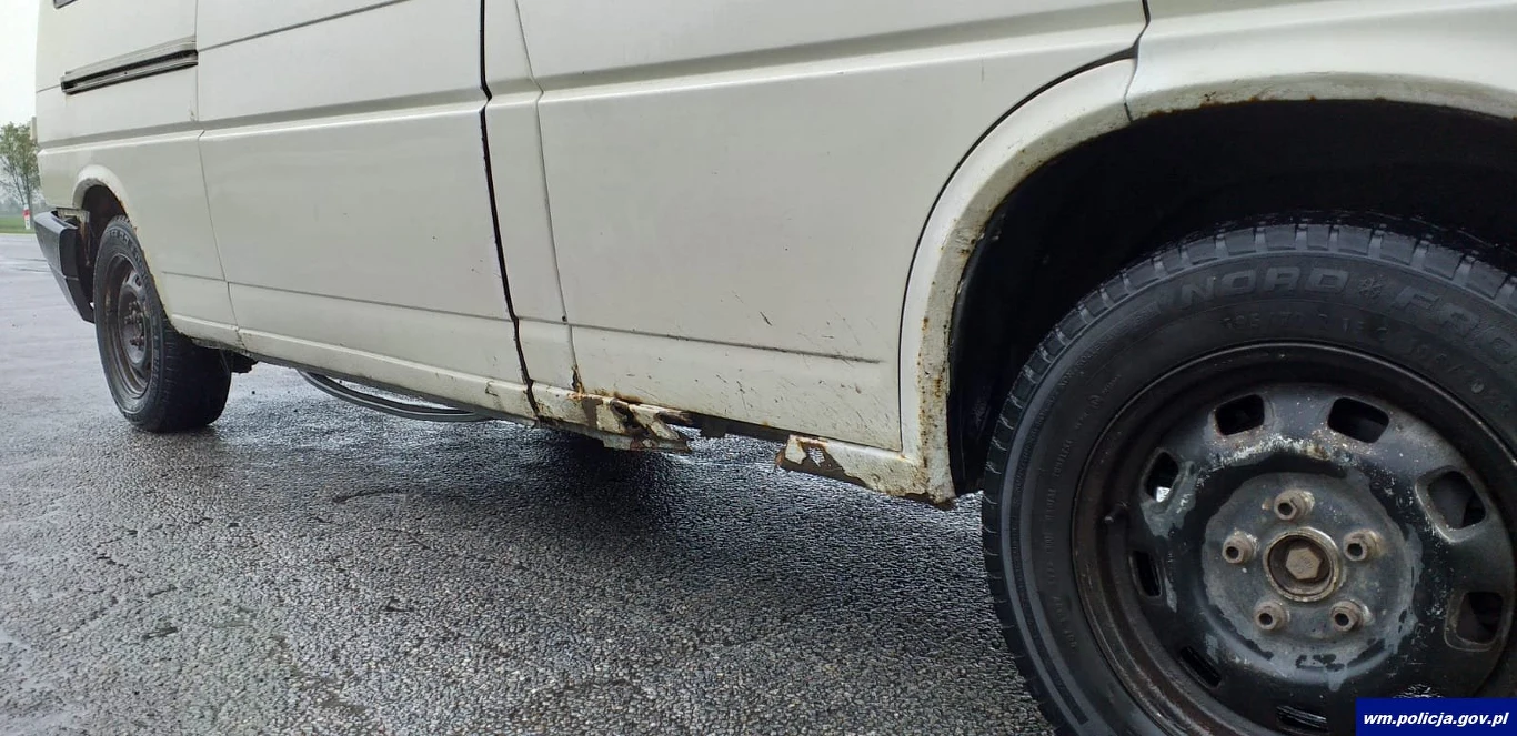 Policjanci drogówki z Elbląga zatrzymali do kontroli drogowej 40-letniego mężczyznę kierującego vw transporterem. Auto było w opłakanym stanie technicznym, a mówiąc precyzyjnie - blacharskim. Pojazd nie posiadał częściowo progu, a wiec elementu konstrukcyjnego pojazdu, który ma wpływ na bezpieczeństwo w ruchu drogowym. Funkcjonariuszom nie przeszkadzał fakt, że właściciel nie posiadał tego dokumentu podczas kontroli. Od października ubiegłego roku, policjanci "elektronicznie" poprzez systemy policyjne, mają prawo zatrzymać dowód rejestracyjny, informując przy tym wydział komunikacji.Kierujący tłumaczył się tym, że "auto co prawda nadgryzł ząb czasu, ale jest już umówiony w warsztacie na naprawę".
