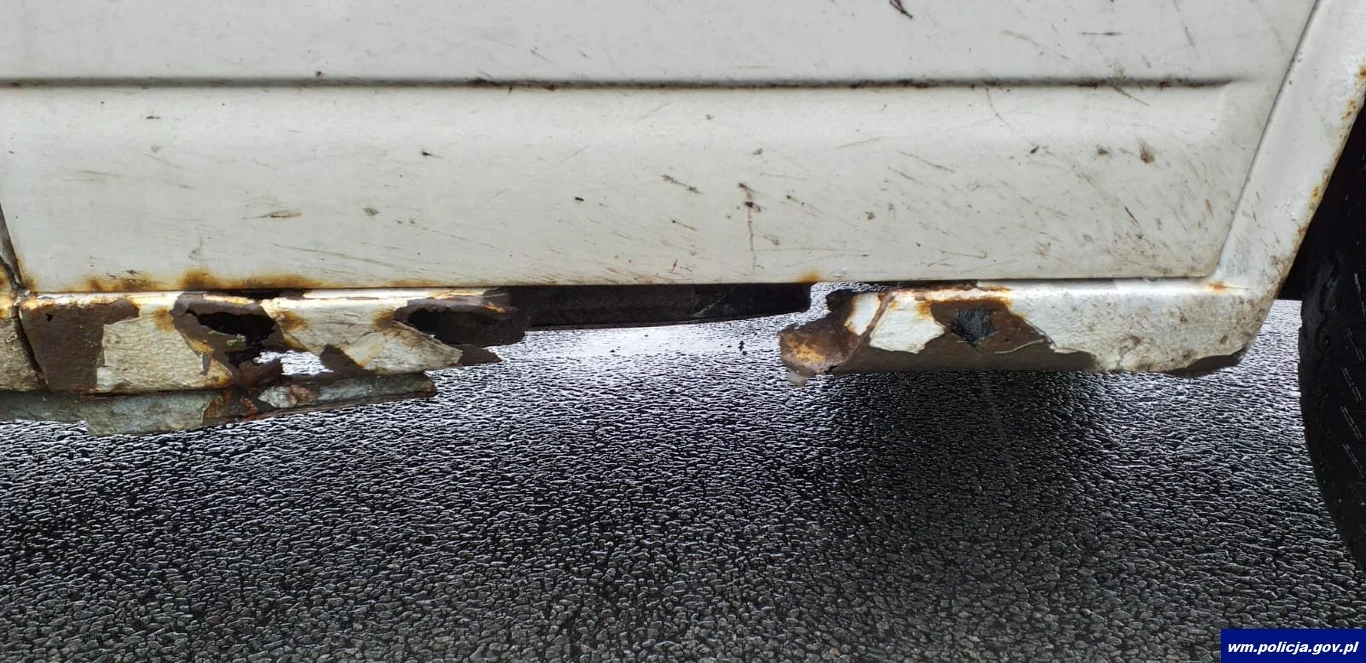 - To standardowe tłumaczenie - mówi sierż. szt. Maciej Krztoń z Wydziału Ruchu Drogowego KMP w Elblągu, który kontrolował ten pojazd. Jak powiedział policjant: - Auto od spodu było tak skorodowane, że nie miało praktycznie progów.