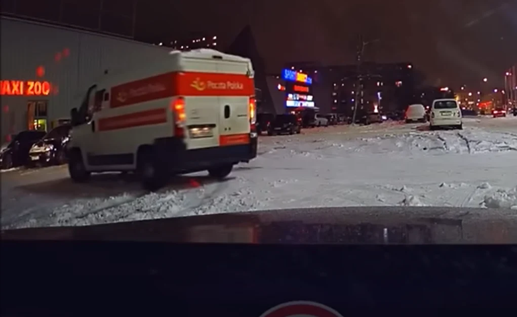 Postronny kierowca przypadkiem nagrał pojazd dirftujący na parkingu pod centrum handlowym. Zimą nie jest to widok niespotykany, ale nikt raczej nie spodziewał się, że miłośnik driftu będzie siedział za kierownicą dostawczaka należącego do Poczty Polskiej.