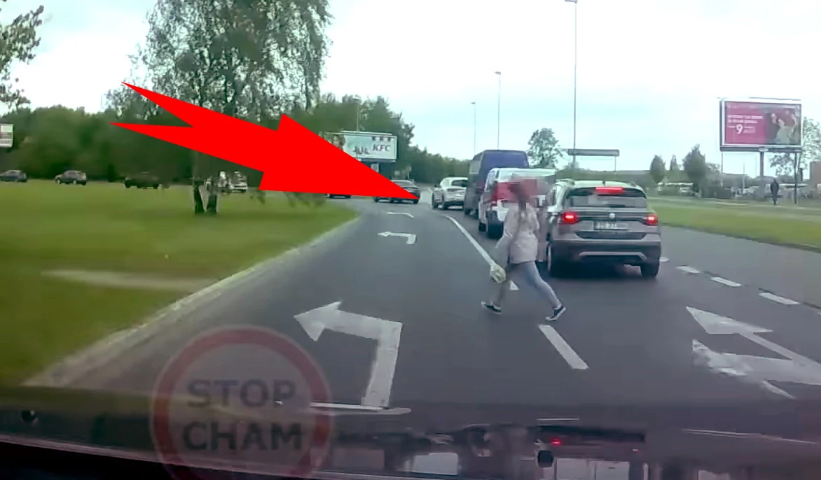 W internecie pojawiło się nagranie, które mrozi krew w żyłach. Sytuacja ma miejsce na ulicy Ku Słońcu w Szczecinie. Kierowca jadący lewym pasem jezdni do skrętu w lewo omija stojące do jazdy na wprost samochody. W pewnym momencie spomiędzy samochodów wychodzi młoda kobieta, która nie patrząc, zdecydowanym krokiem zmierza wprost pod koła samochodu.