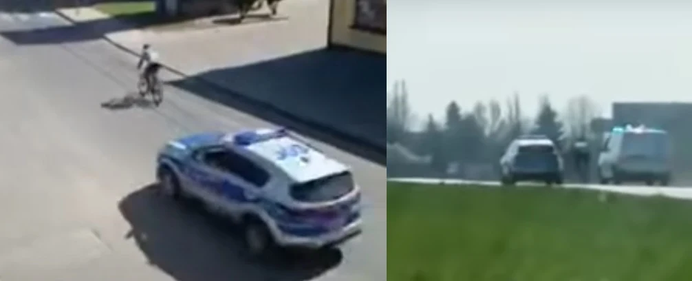 Komedia. Dwa radiowozy goniły rowerzystę!