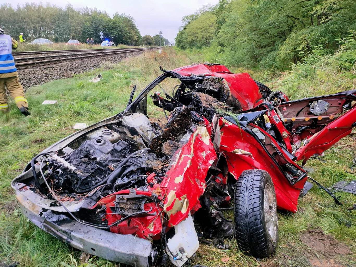 27-letnia kobieta prowadząca osobówkę wjechała na niestrzeżony przejazd kolejowy wprost pod nadjeżdżający szynobus. Czerwony Chrysler Neon został odrzucony na bok, a pociąg zatrzymał się kilkaset metrów od przejazdu. Auto stanęło w płomieniach. Według informacji policji kobiecie udało się wysiąść z samochodu i wyciągnąć dwójkę dzieci w wieku 5 i 7 lat.