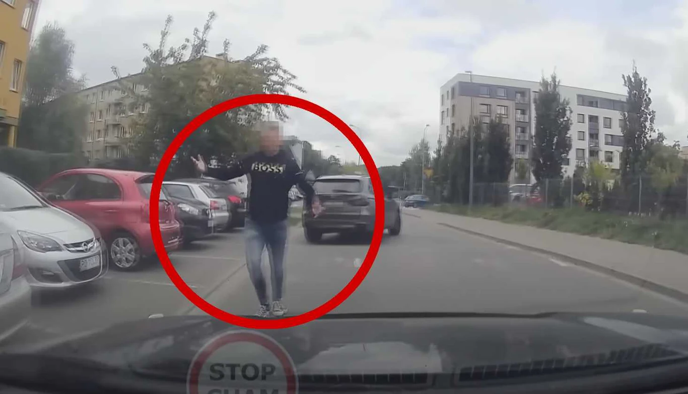 Z jednej strony - spieszył się tak, że chciał się wcisnąć przed nagrywającego. Z drugiej - nie spieszył na tyle, by zrezygnować z możliwości pokazania mu, że nie da się lekceważyć. Trzymał się tylnego zderzaka nagrywającego, wjechał za nim na parking centrum handlowego i kilkukrotnie próbował go wyprzedzić.