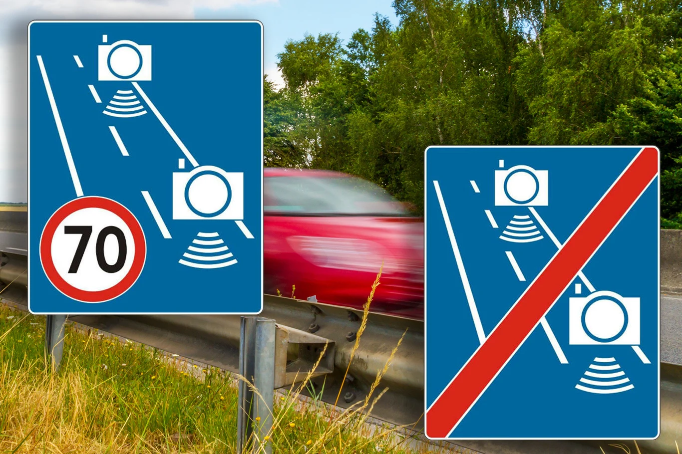 Jak informuje resort infrastruktury, nowy znak D-51a "automatyczna kontrola średniej prędkości" będzie wskazywał fragment drogi objęty odcinkowym pomiarem prędkości, natomiast znak D-51b "koniec automatycznej kontroli średniej prędkości" - koniec tego odcinka.