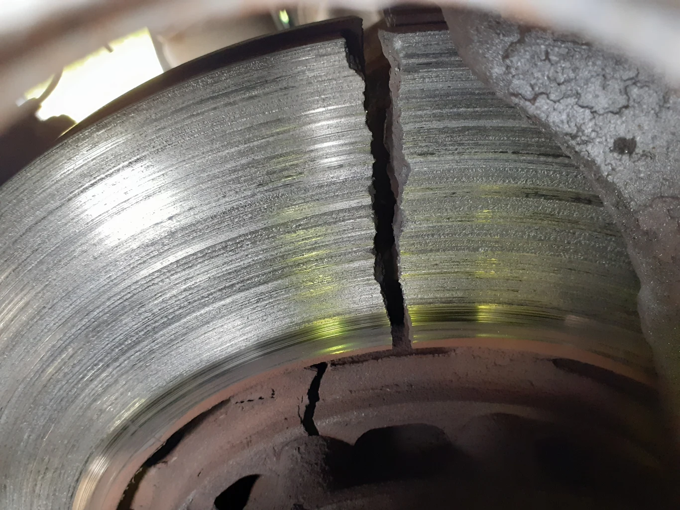 W trakcie sprawdzania stanu technicznego pojazdu inspektorzy zauważyli znaczne pęknięcie na tarczy hamulcowej przy jednym z kół naczepy ciężarowej oraz pęknięcie tarczy hamulcowej na kole osi w ciągniku samochodowym. Przewody hamulcowe w naczepie ciężarowej były odłączone. Kierowca przyznał, ze sam je odłączył z uwagi na uszkodzoną tarczę hamulcową.