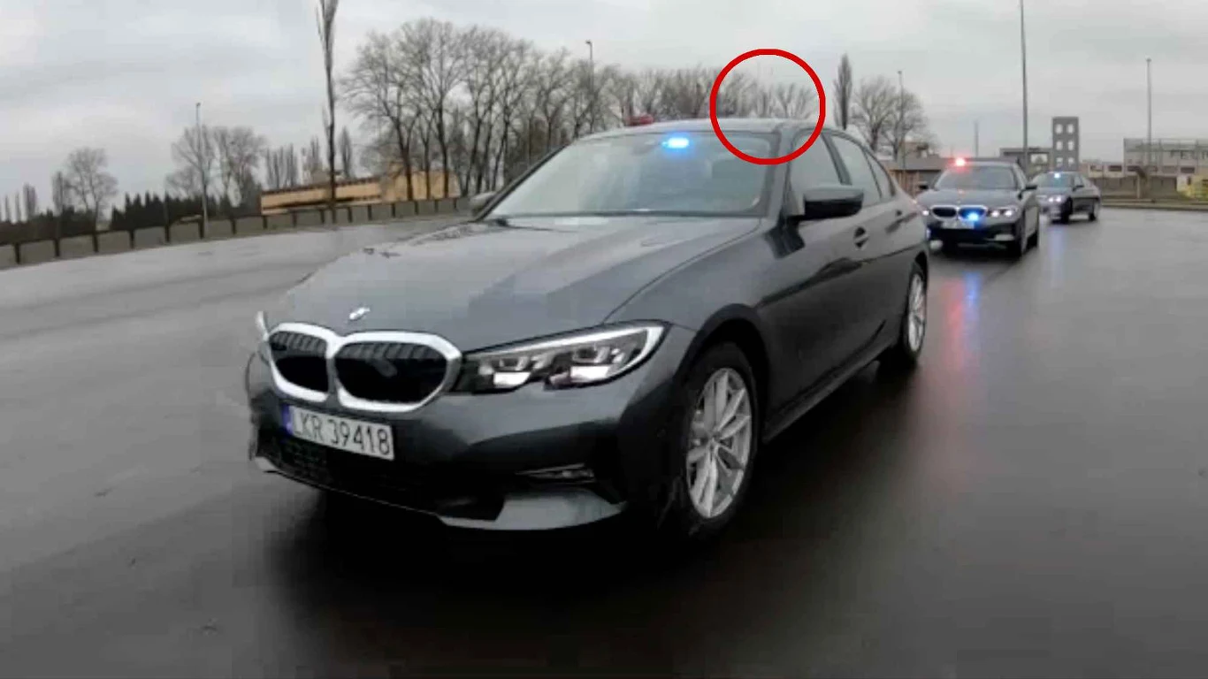 Nie trzeba wypatrywać kamer za szybą, ani wyświetlacza za kanapą. Policyjne BMW zdradza zupełnie inny, dobrze widoczny detal.