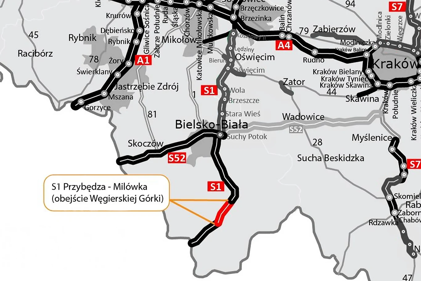 Wspomniany odcinek pomiędzy miejscowościami Przybędza i Milówka to zaledwie jeden z fragmentów budowanej drogi ekspresowej S1. Nowa trasa biegnąca od autostrady A1 w Pyrzowicach do granicy ze Słowacją w Zwardoniu będzie stanowiła ważną część VI korytarza Transeuropejskiej Sieci Transportowej, łączącego kraje basenu Morza Bałtyckiego z krajami Europy Południowej.