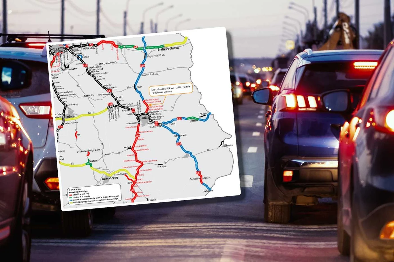 Ten 23-kilometrowy odcinek ma kluczowe znaczenie dla kierowców z Lublina i podlubelskich miejscowości. Tamtejszym fragmentem drogi krajowej nr 19 w kierunku Lublina porusza się nawet 28 tys. aut na dobę. Kierowcy z okolicznych miejscowości, którzy rano dojeżdżają tamtędy do pracy w Lublinie, a po południu wracają nią wśród tirów, narzekają na niekończące się korki. Po ogłoszeniu wyników przetargu w 2021 odetchnęli z ulgą. Niestety - na krótko.