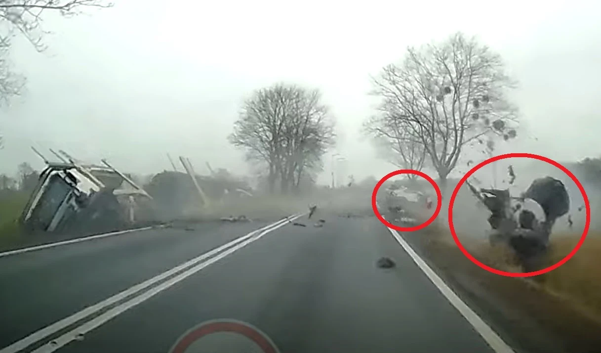 Siła jest na tyle duża, że przód osobówki odrywa się od reszty pojazdu, która zostaje odrzucona na kilkanaście metrów dalej. W rowie po przeciwnej stronie drogi ląduje także ciężarówka. Jak możemy dowiedzieć się z opisu nagrania, śmierć na miejscu poniósł 42-letni kierowca Forda Mondeo. Z kolei 28-letniemu kierującemu ciężarówką nie stało się nic poważnego.