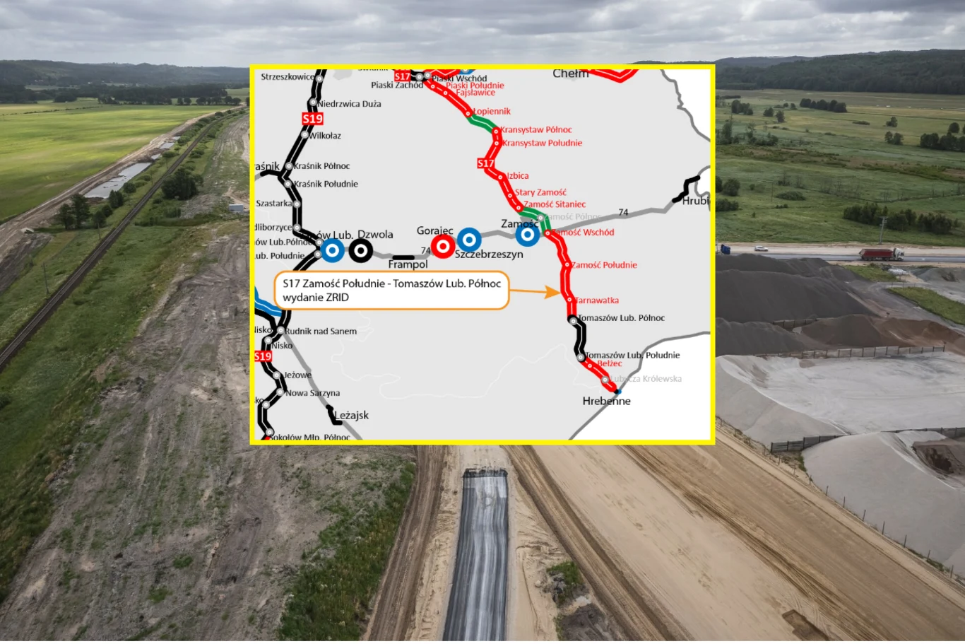 W budowie są aktualnie trzy odcinki drogi ekspresowej S17 o łącznej długości prawie 50 km między Piaskami a Hrebennem. Od wakacji trwają prace nad fragmentem Zamość Wschód-Zamość Południe i Tomaszów Lubelski-Hrebenne. Ostatni odcinek będzie mierzył blisko 2 km i poprowadzi do terminala na granicy z Ukrainą.