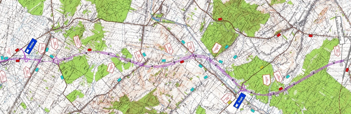 Zbudowane zostaną również urządzenia ochrony środowiska m.in. ekrany akustyczne (ok. 7,5 km), drogi dojazdowe komunikujące tereny przyległe (ok. 26 km) oraz Miejsce Obsługi Podróżnych na wysokości miejscowości Przełom.