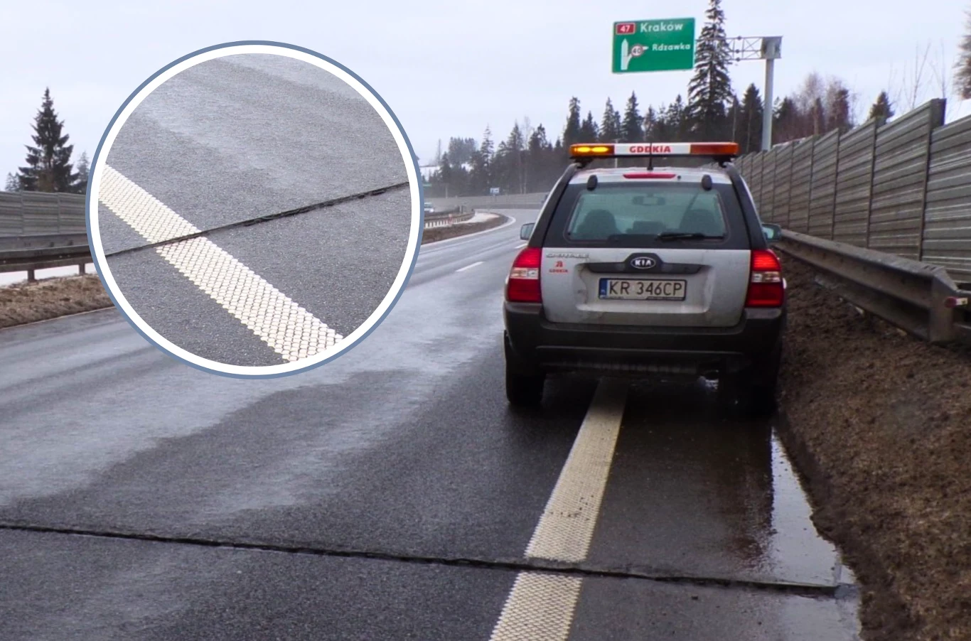 Naprawiany fragment to część 16-kilometrowego, dwujezdniowego odcinka nowej zakopianki między Rdzawką a Nowym Targiem. Trasa została oddana do użytku pod koniec sierpnia 2024 r. i nadal objęta jest gwarancją.